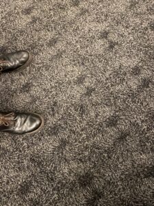The wonderful carpet at the Royal Institution depicts iron filings in a magnetic field. Michael Faraday was the first to recognise that the space around a magnetic is permeated by an invisible force-field. By doing so, he pretty much invented 21st-century physics since fields are seen as the most fundamental entities in the universe